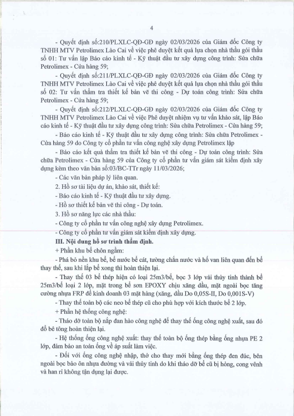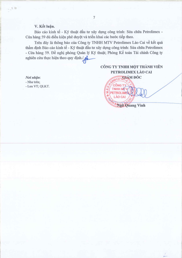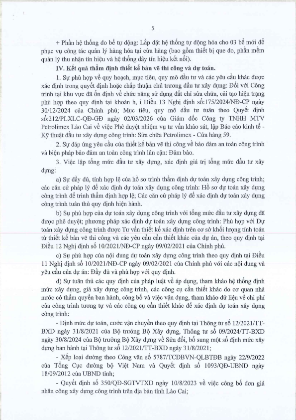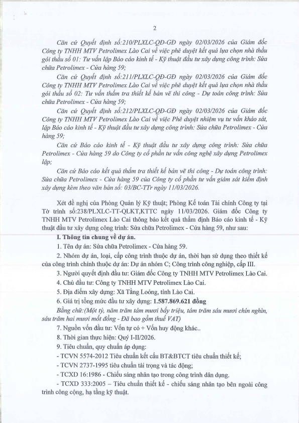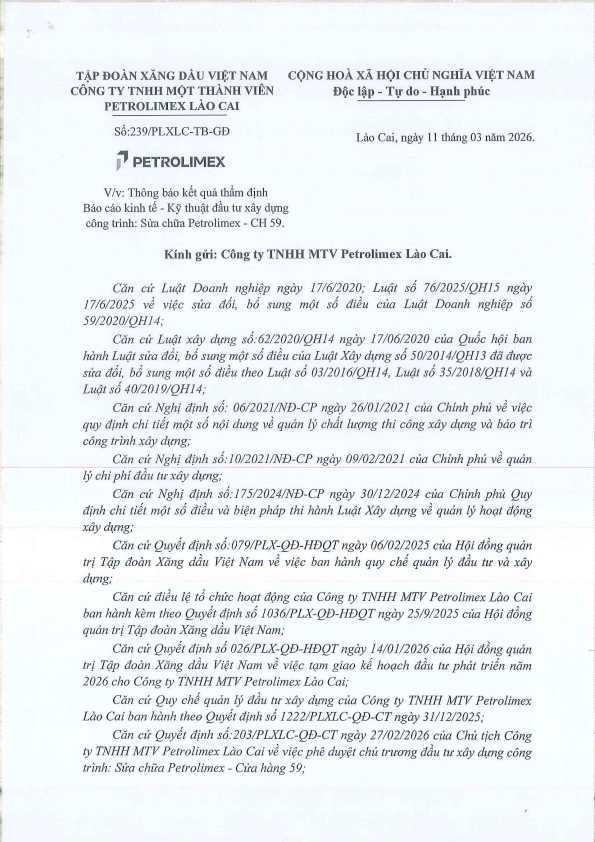 V/v Thông báo kết quả thẩm định Báo cáo kinh tế- kỹ thuật dầu tư xây dựng công trình: Sửa chữa Petrolimex - CH59